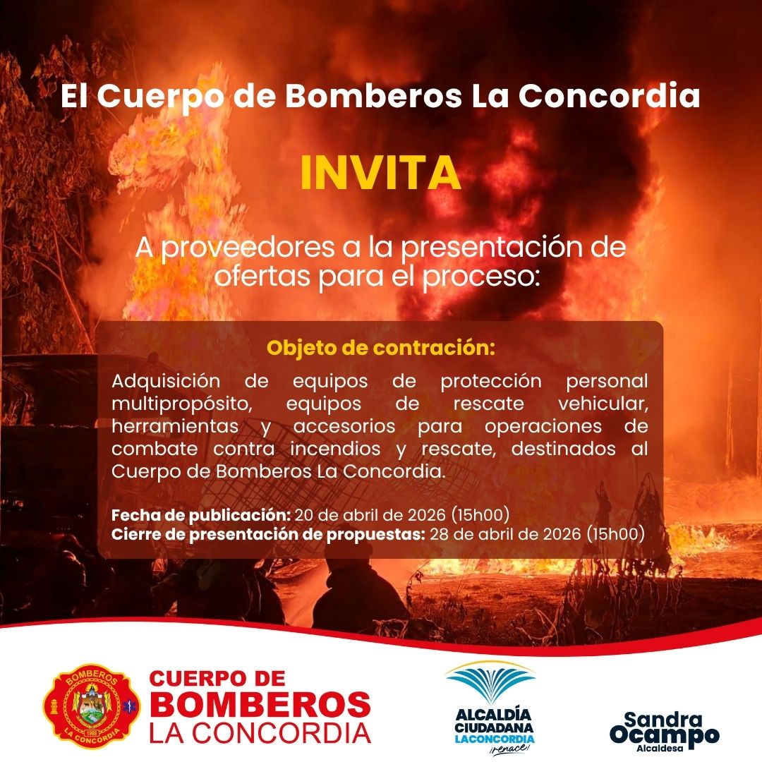 Adquisición de equipos de protección personal multipropósito, equipos de rescate vehicular, herramientas y accesorios para operaciones de combate contra incendios y rescate, destinados al cuerpo de bomberos la concordia.