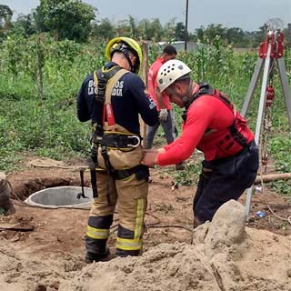 En el sitio nuestros bomberos luego de un arduo trabajo utilizando equipos y herramientas de rescate, lograron liberar y extraer con vida al ciudadano del interior del pozo, posteriormente a esto fue trasladado hasta una casa de salud por la ambulancia de nuestros hermanos del Cuerpo de Bomberos Santo Domingo, dónde recibirá atención médica especializada.